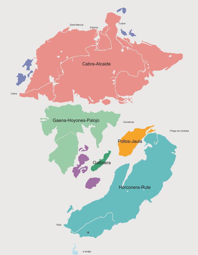 La alineación de la Sierra de Albayate (1301 m) y de la Loma de las Ventanas (839 m) compone la franja más meridional y oriental del espolón divisorio, con escasas anchura y altura en el sector de Iznájar, aumentando hacia el NE.