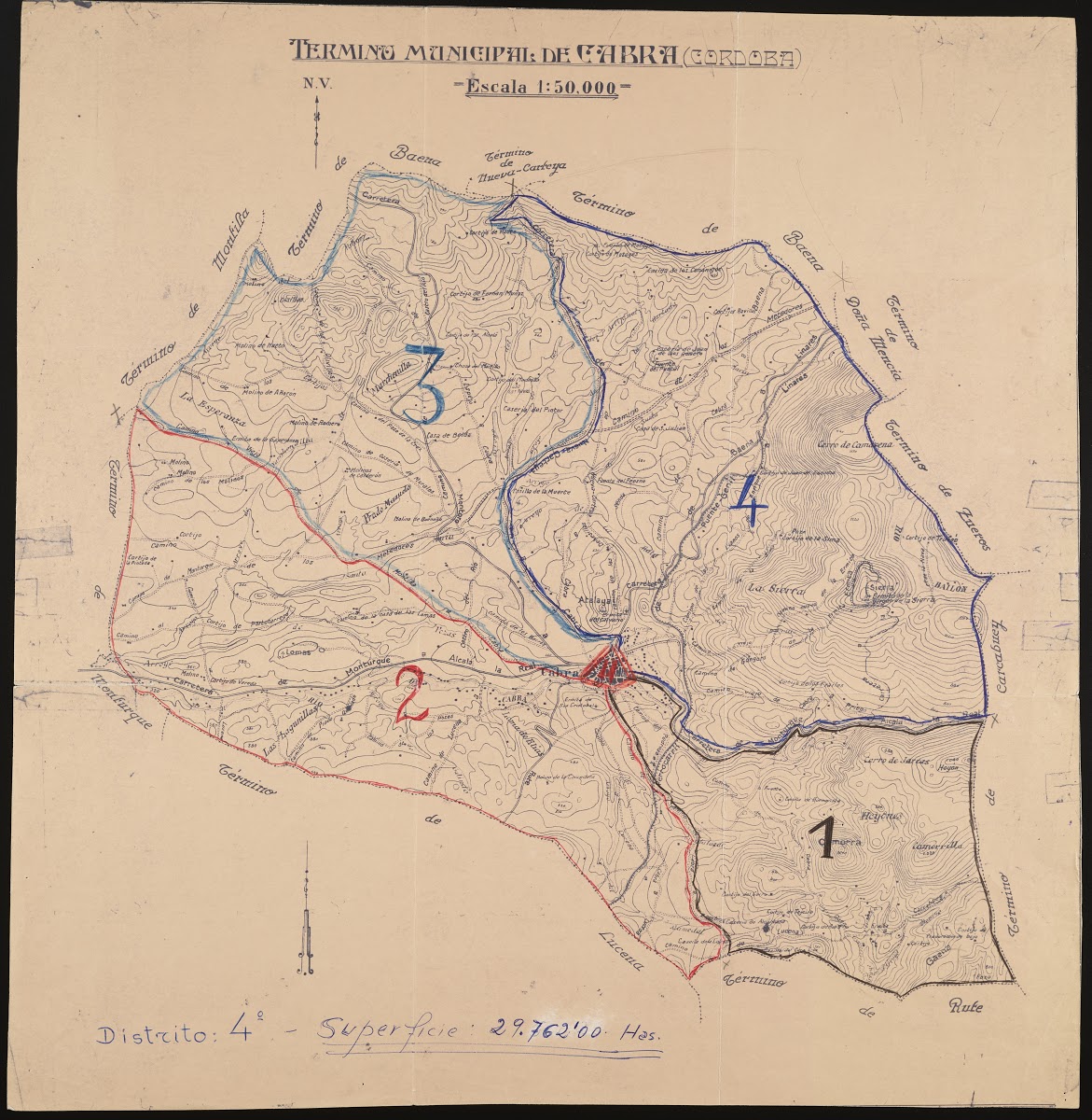 Plano del término municipal de Cabra (Córdoba) a escala 1:50000, utilizado para la elaboración del Censo de Población y Viviendas, 1970. Google Arts & Culture.