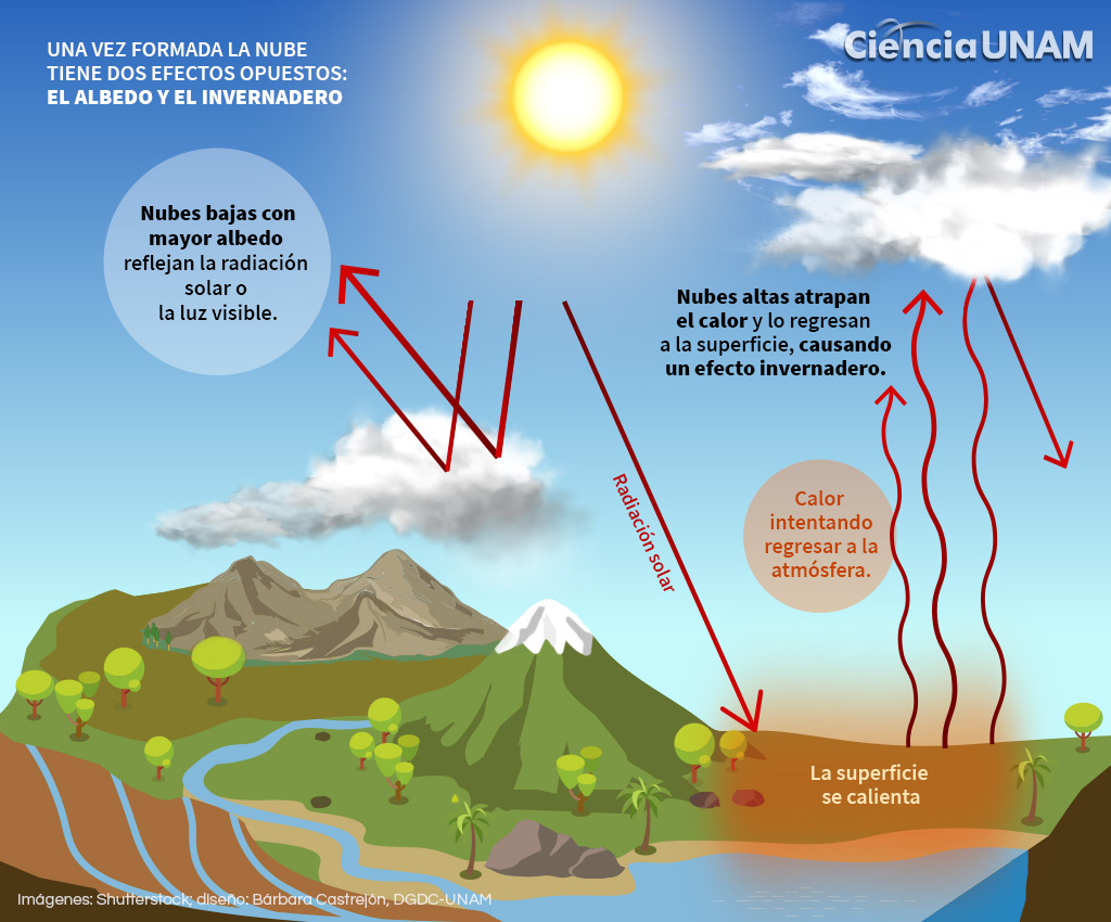 f) Nubosidad: La nubosidad afecta a la cantidad de radiación solar que llega a la Tierra y a la radiación terrestre que queda atrapada por la atmósfera y que no escapa al espacio exterior.