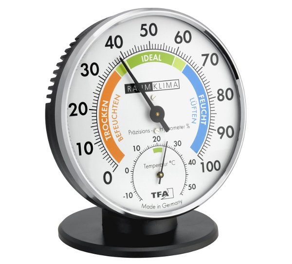 Humedad relativa: es la relación expresada en porcentaje entre el vapor de agua contenido en un volumen de aire y la masa de vapor de agua que saturaría dicho volumen. Se mide en %. Cuando se llega a una humedad relativa del 100% de dice que el aire está saturado y no admite más vapor de agua Cuanto mayor sea la temperatura de un aire, mayor es su capacidad de retención de humedad, por el contrario, la capacidad higrométrica es menor con el descenso de temperatura.