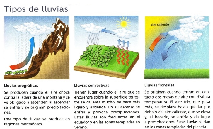 Según su origen, se pueden distinguir tres tipos de precipitaciones: