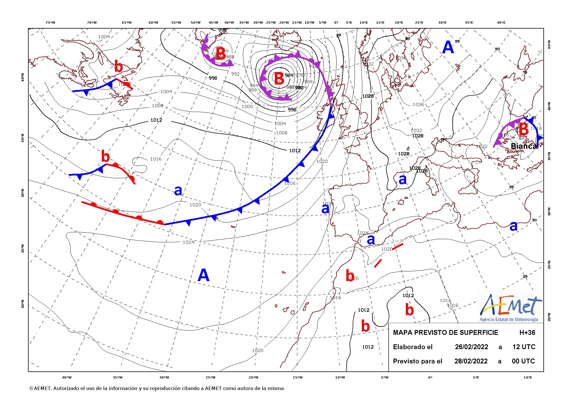 Los meteorólogos, para representar de un modo sencillo lo que ocurre en la atmósfera, trazan los mapas del tiempo en superficie y en varias alturas. Los mapas de superficie representan las isobaras de cuatro en cuatro milibares, reducidas al nivel del mar. En los mapas se observan figuras de alta presión o Anticiclones (A), cuando las isobaras van de menos a más presión y superan los 1013 mb.. Estos anticiclones originan un tiempo seco, frío o caluroso, dependiendo de la época del año y de las masas de aire. Junto a ellos aparecen figuras de baja presión o Depresiones o Borrascas (B), cuando las isobaras van de más a menos presión y se sitúan por debajo de los 1013 mb. Finalmente se pueden ver los frentes de lluvias, dibujados con semicírculos cuando son cálidos y con triángulos cuando son fríos.