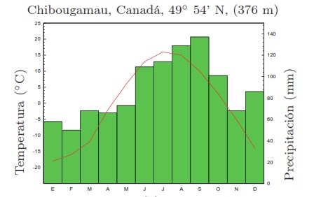 Figura 15 g. Climograma clima continental húmedo | Figura 15 h. Bosque de coníferas |