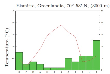 - d: inviernos muy fríos, la temperatura media del mes más frío es inferior a - 38 ºC.