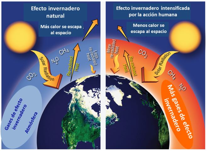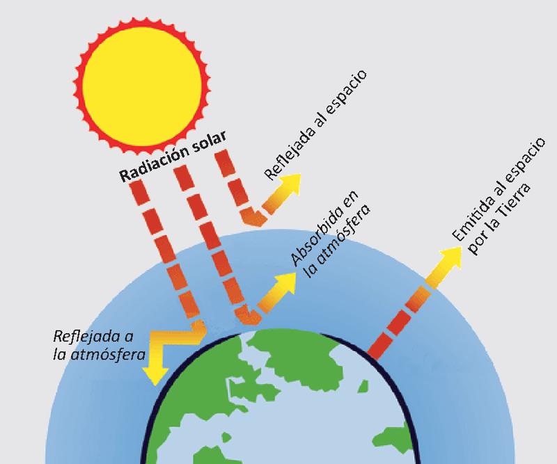 En el análisis del balance energético planetario se debe reseñar la importancia que tiene el flujo de energía en forma de onda larga que recibe la superficie terrestre procedente de la troposfera por efecto de la radiación efectuada por las nubes que, a dichos efectos, actúan como cuerpos negros y por gases absorbentes como el vapor de agua y dióxido de carbono, entre otros. De no existir las nubes y estos gases de efecto invernadero la temperatura efectiva a la que el sistema Tierra-atmósfera se encuentra en equilibrio de radiación sería de -18º C en vez de los +15º C actuales. Esta diferencia es el denominado “efecto invernadero natural”, que hace habitable nuestro planeta a semejanza del confort térmico que registran las plantas en un invernadero. Cuestión distinta es el aumento de este efecto invernadero natural por efecto de la emisión antropógena de determinados gases, proceso en el que se apoya la hipótesis actual de cambio climático.