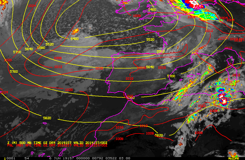 Embolsamiento de aire frío rodeado por aire más cálido debido a una profunda ondulación de la corriente en chorro polar, que acaba desprendiéndose y avanzando hacia latitudes más cálidas. Las siglas DANA significan “Depresión Aislada en Niveles Altos”. Genera gran inestabilidad, con chubascos intensos y fuertes tormentas, especialmente si el aire en superficie es muy cálido y húmedo. En España esta situación es característica a finales de verano e inicios del otoño e incide especialmente sobre las costas mediterráneas, las costas cantábricas y el suroeste o sur peninsular.