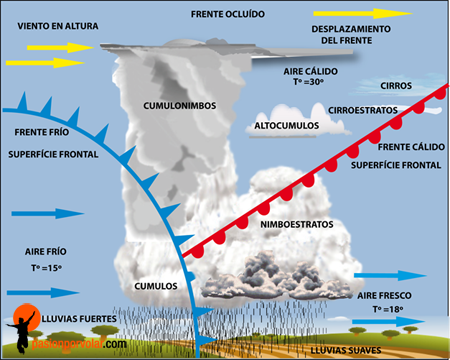 En meteorología, un frente es una franja de separación o zona de interacción entre dos vientos o masas de aire con características diferentes de temperatura o humedad. Se clasifican como fríos, cálidos, estacionarios y ocluidos según sus características. Los frentes meteorológicos se asocian a menudo con sistemas de presión atmosféricos. Son generalmente guiados por corrientes de aire. Los frentes pueden verse afectados por formaciones geográficas como montañas y grandes volúmenes de agua.