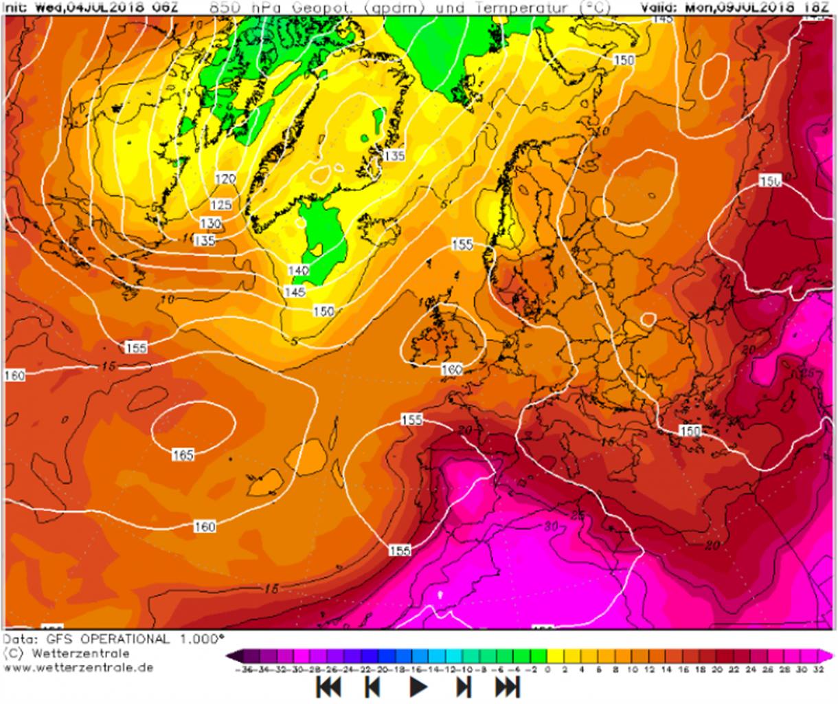 Tipo de tiempo caracterizado por la súbita elevación de los registros térmicos, que tornan extremos en las máximas. Aunque la expresión ha hecho fortuna entre el gran público, resulta más apropiado el término advecciones de aire cálido, o golpes de calor, alusivas a la causa genética que las origina y la corta duración que suelen tener. Golpes de calor tienen por causa la llegada de aire tropical y, en puridad, de la masa de aire tropical continental a latitudes superiores a las de su manantial y aunque se desarrollan, preferentemente en verano, estación en la que los valores de temperatura máxima se disparan, en latitudes medias, por encima de los 30º, alcanzan e, incluso, rebasan los 40º C, advecciones de aire tropical pueden causar elevación súbita de registros térmicos en cualquier época del año.