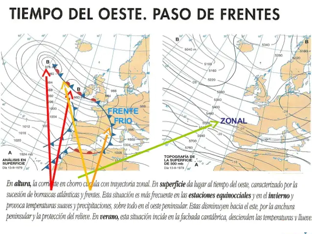 La aportación más señera y valiosa de la Escuela de Bergen a la ciencia meteorológica es la descripción y representación de la imagen del ciclón extratropical o noruego, realizada por Jacob Bjerknes en 1919. Tras relacionar, certeramente, parámetros climáticos básicos y sistemas nubosos, dicho investigador llegó a la conclusión de que dos superficies de discontinuidad, es decir, un frente cálido anterior y un frente frío posterior estructuraban la borrasca. En efecto, las referidas superficies de discontinuidad llamadas, sucesivamente, líneas de turbonada, de convergencia o rumbo, acabaron por recibir la denominación de frentes, como resonancia y recuerdo de la guerra de trincheras que había caracterizado el primer conflicto mundial. La palabra «frente» está tomada así del lenguaje militar, dado que el choque entre las dos masas produce una actividad muy dinámica similar a una batalla, con tormentas eléctricas, ráfagas de viento y aguaceros.