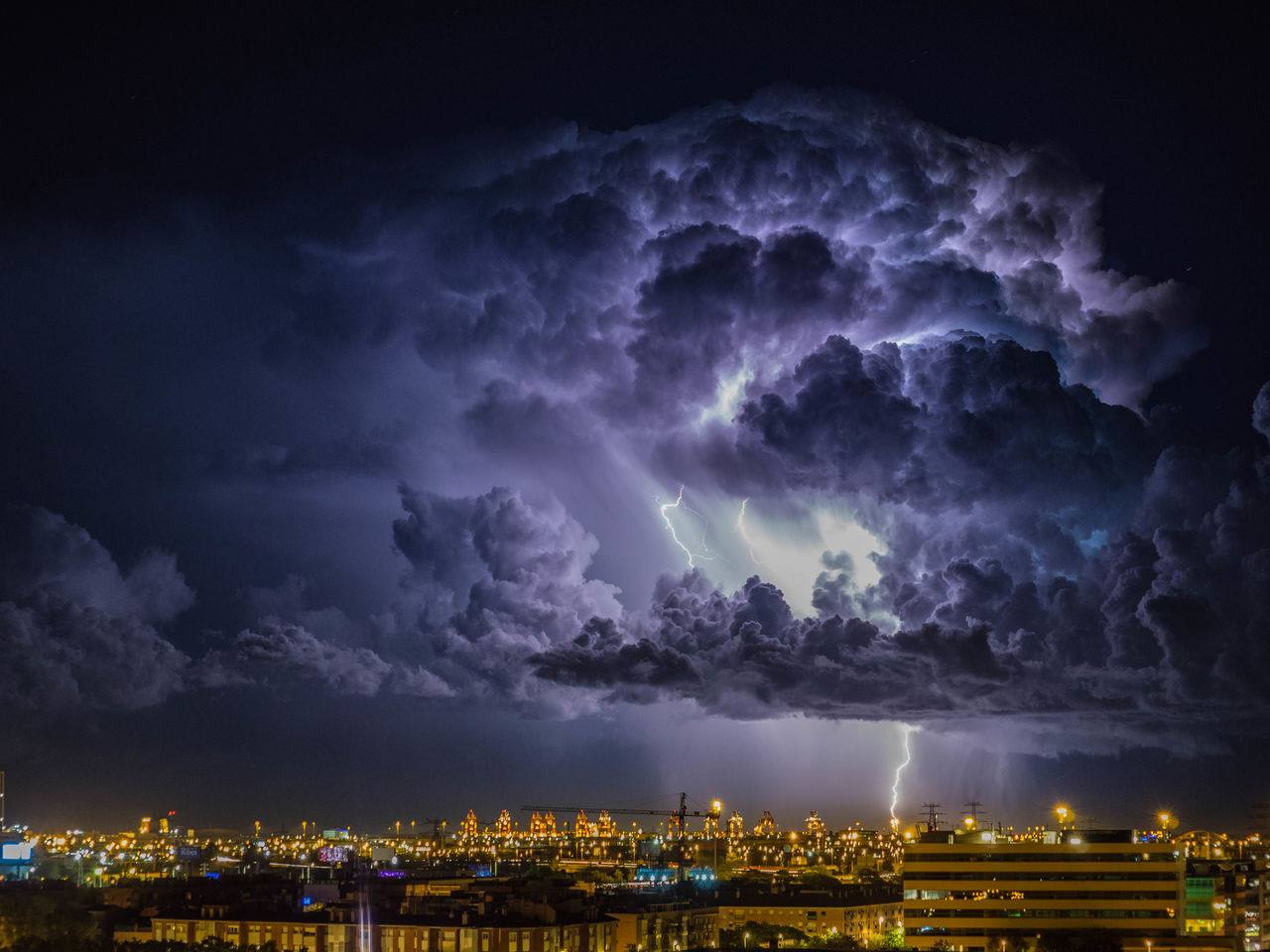 Propiamente, una tormenta es una tempestad de escala local, siempre producida por un cumulonimbo y acompañada de rayos. A menudo las tormentas van acompañadas también de fuertes rachas de viento, precipitación intensa e incluso granizo. Sin embargo, la actividad eléctrica es el único requisito imprescindible para la consideración de un episodio convectivo como de tormenta. Los sistemas nubosos que generan tormentas ordinarias tienen generalmente una extensión del orden de 10 km2 y una duración del orden de una hora. Su desarrollo vertical suele ser, en latitudes medias, aproximadamente de unos 10 km de altura y, en general, menor cuanto más cerca de los polos y mayor cuanto más cerca del ecuador. En condiciones favorables, las tormentas pueden organizarse en sistemas convectivos de mesoescala. Las tormentas se pueden calificar de débiles, moderadas o fuertes, en función de su actividad eléctrica, de la intensidad de la precipitación y del viento, del tamaño o la acumulación del granizo, en su caso, y de la propia estructura de la nube que las sostiene. Desde el punto de vista de su origen, pueden ser frontales (si se desarrollan al paso de un frente) o de masa de aire (si se desarrollan en el seno de una masa de aire inestable, y no en la frontera de dos masas distintas). En un sentido amplio, se habla de tormenta tropical, tormenta de polvo, etc., usando en estos casos la palabra tormenta como sinónimo de tempestad o perturbación violenta de la atmósfera.