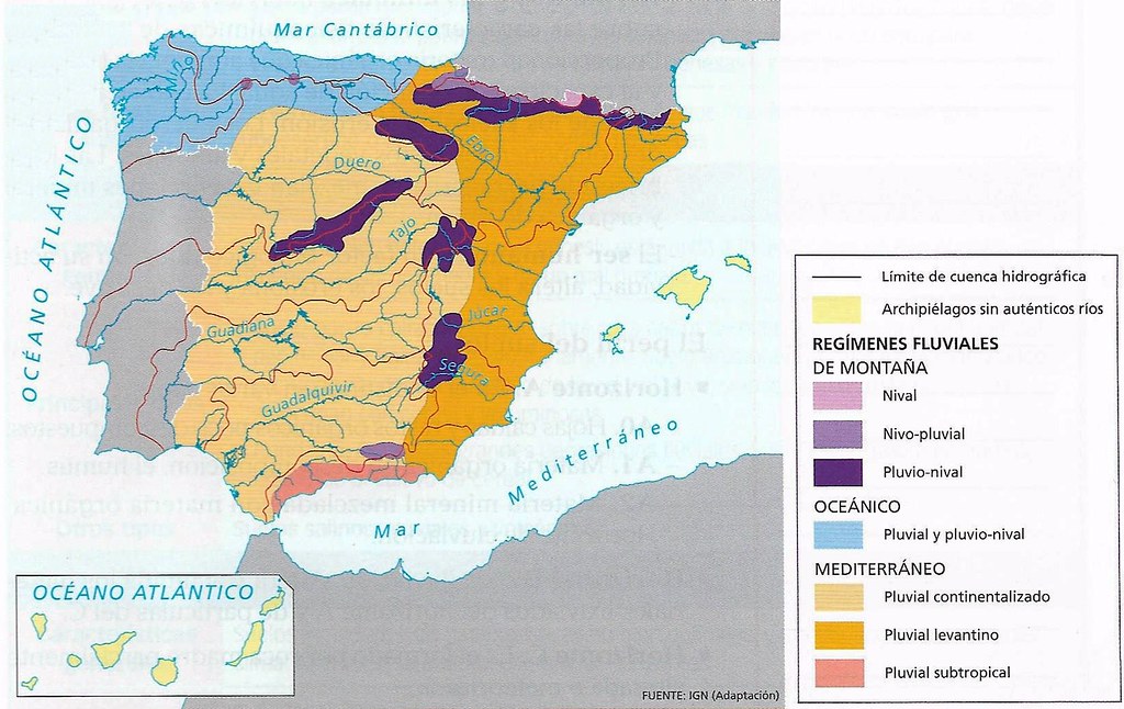 Figura 11 a. Regímenes fluviales de la Península Ibérica |