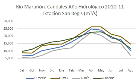Figura 11 h. Hidrograma río Marañón | Figura 11 i. Río Marañón (Perú) |