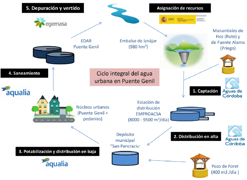 - Usos municipales. El abastecimiento urbano abarca las necesidades de agua de las viviendas, es decir, el uso doméstico, y el de comercios, centros y servicios públicos.