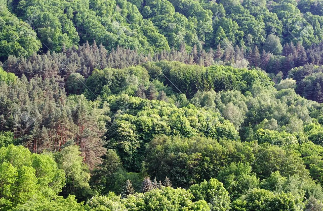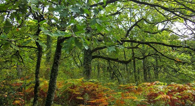 Figura 1 f. Asociación vegetal: árboles caducifolios y coníferas | Figura 1 g. Hayedo (hayas y helechos en asociación) |