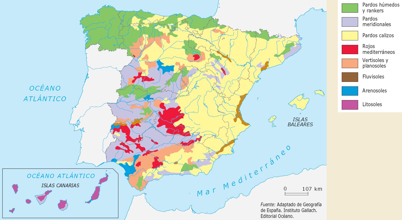 Mapa de suelos de España. Ed. Santillana