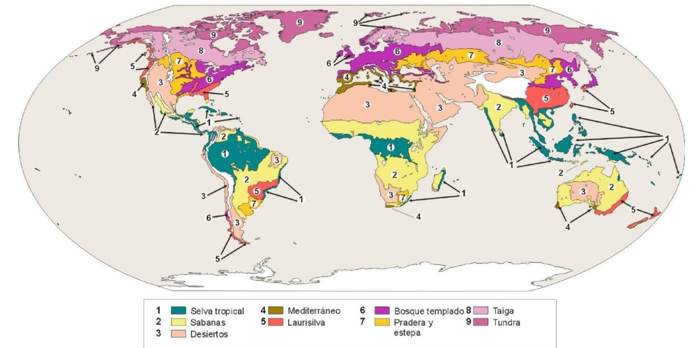 A continuación, vamos a examinar los principales biomas terrestres asociados a las grandes zonas climáticas: