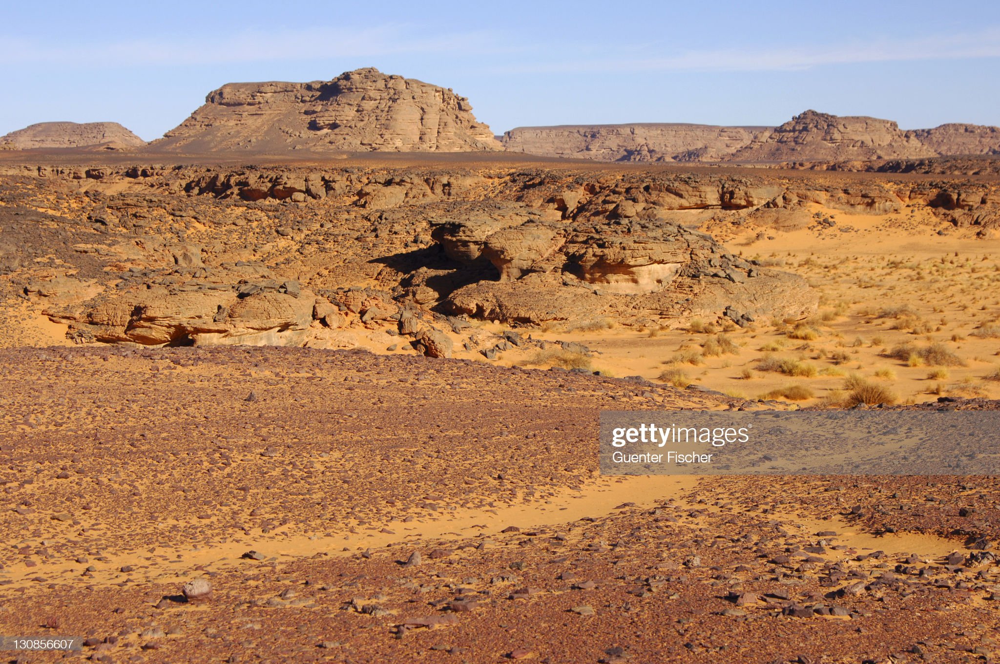 - desierto rocoso (en árabe, hamada): son grandes extensiones desérticas compuesta por rocas planas, cubiertas de grava, de dimensiones mayores a los seis centímetros.