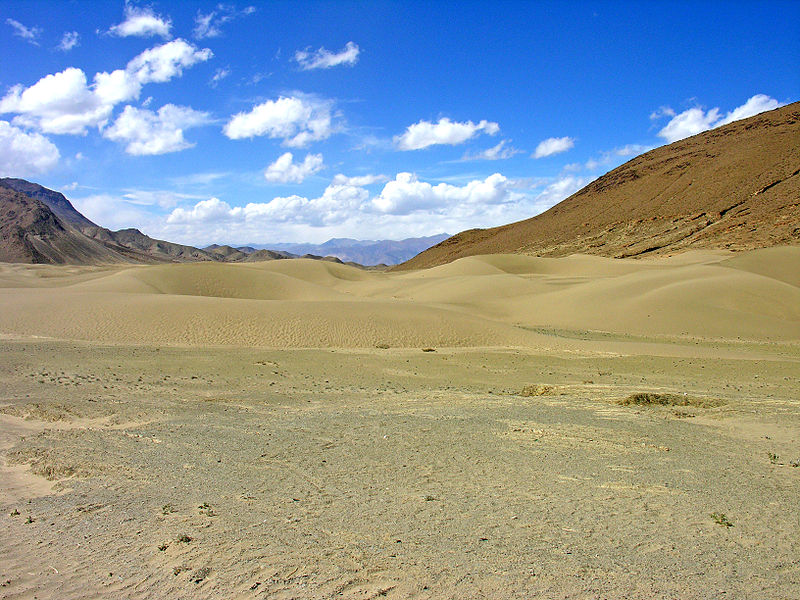 f) Desiertos subpolares y de área de montaña: Estas áreas se caracterizan porque a la escasez de agua se unen los efectos de las bajas temperaturas y, en ocasiones, del viento. Pueden situarse o bien en zonas de gran altitud (Tibet, altiplanos andinos) o bien en regiones secas de altas latitudes (Patagonia, algunas áreas de la periferia del Ártico...). La vegetación existente se reduce a líquenes y plantas diminutas.