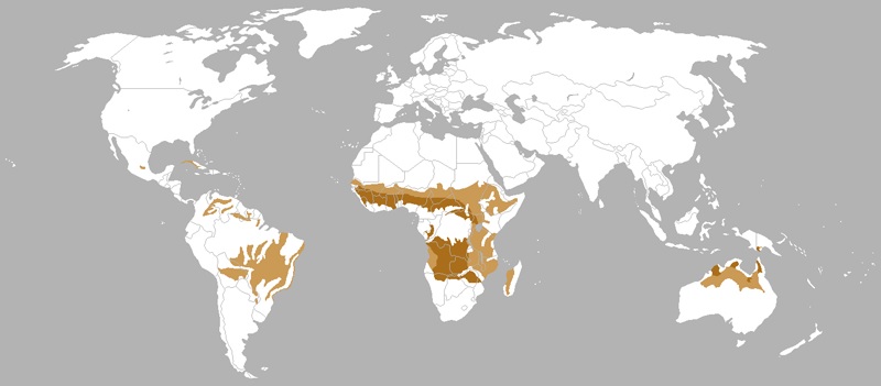 Las sabanas son formaciones abiertas dominadas por plantas herbáceas, principalmente gramíneas, salpicadas por árboles y arbustos. Propias de las regiones semiáridas de los trópicos, y se localizan en extensas áreas de África subsahariana, oriental y meridional, en América del Sur (al Norte y Sur de la cuenca amazónica y en gran parte de la del Orinoco), en Australia y en algunas zonas de la India y del Sureste asiático.