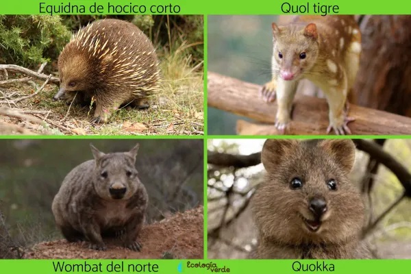Sin embargo, existe una lista mucho más larga con ejemplos como los wombats, marsupiales de pequeño tamaño, el ualabí o walabí, un mamífero de tamaño mediano con elevada semejanza al canguro, o el dingo, comúnmente conocido como un perro salvaje. Muchas de estas especies se encuentran en la actualidad en peligro.