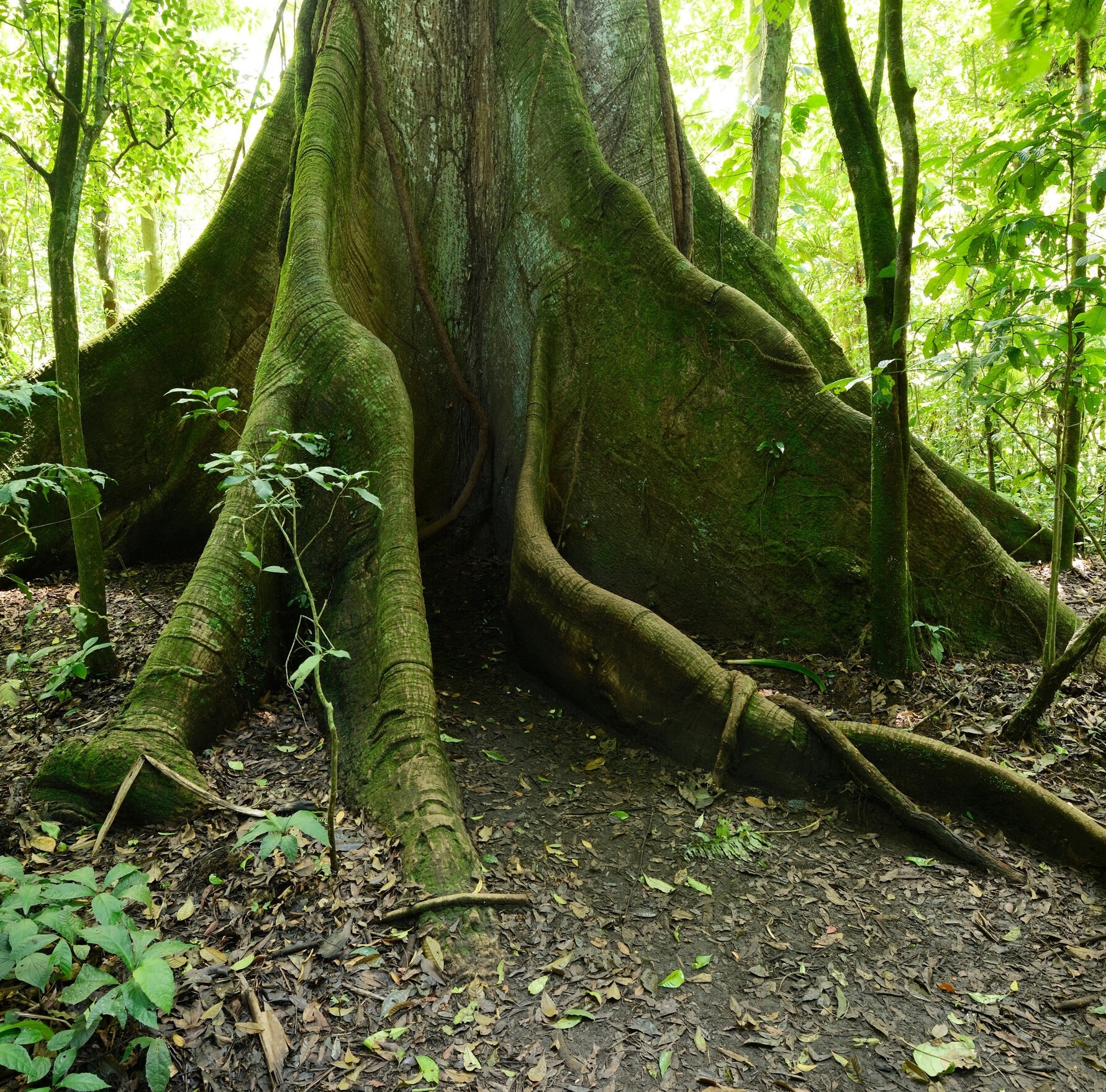Los árboles de selva no tienen raíces profundas ya que los nutrientes se encuentran en el humus y en la materia que cae sobre el suelo y éste es casi estéril a algunos centímetros de profundidad, pero sí desarrollan un intrincado sistema de raíces radiales que sirven para anclar el árbol al suelo.
