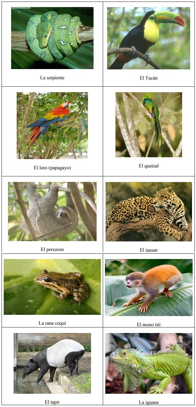 Figura 9 y. Ejemplo de fauna de los bosques húmedos |