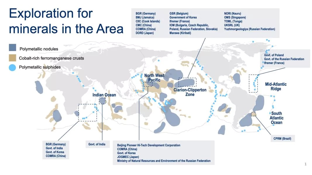 En el siguiente mapa se pueden observar las grandes áreas submarinas que albergan importantes yacimientos minerales.