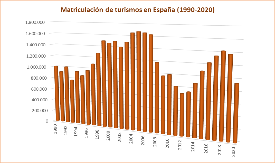 El sector del automóvil se desarrolló en España en la década de 1960, siendo, a su vez, uno de los impulsores del crecimiento económico. Prosperó bajo la protección estatal y al amparo de las inversiones realizadas por grandes marcas multinacionales y por el INI. Constituye un sector de gran influencia en la economía; el conjunto del subsector del automóvil representa más del 10% de los empleos industriales y repercute por sus efectos inductores y por su capacidad de activar las numerosas empresas de las que recibe componentes: transporte, logística, etc.; supone casi el 20% del VAB manufacturero, aportando el 8% del PIB español y el 9% del empleo (1,8 millones de ocupados, de os cuales 66.00 trabajan en las fábricas de automóviles); España viene consolidándose como el segundo fabricante europeo y el octavo productor mundial (2020). Así, España cuenta con importantes plantas de fabricación de automóviles distribuida por toda la geografía nacional (Madrid, Barcelona, Valencia, Zaragoza, Valladolid, Palencia, Vigo, etc.) y es uno de los sectores exportadores de nuestra economía. La industria automovilística sufrió los efectos de la reconversión, que estuvo muy centrada en el saneamiento técnico y financiero, el cual fue posible con el concurso de inversiones extranjeras y estatales que permitieron la integración en complejos industriales de rango superior. Es a la vez un sector maduro, que sufre fuerte competencia externa y amenaza de deslocalización, y un sector dinámico que genera continuamente innovaciones, mejoras tecnológicas y nuevos mercados. Así, existe una total penetración de grandes firmas multinacionales (Fiat, Renault, Dodge, Citroën), que han fueron comprando o absorbiendo empresas españolas ya existentes; por ejemplo, SEAT, una vez privatizada, fue absorbida por la multinacional alemana Volkswagen; su producción está destinada en su mayoría a la exportación, pero cuenta con una importante mercado interno. En la actualidad, afronta el reto del tránsito hacia el coche eléctrico, cuando todavía se asiste a una fuerte dependencia de ciertos componentes de mercados asiáticos, tal como ha mostrado la crisis del COVID-19, que creó la escasez de los mismos y la interrupción temporal de las cadenas de montaje. Igualmente, se afronta el reto hacia la prevención del cambio climático en la luchas contra las emisiones de gases de efecto invernadero.