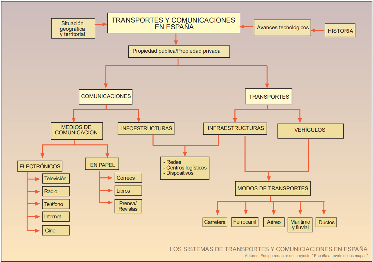 La primera organización del transporte en España la realizaron los romanos con el diseño de la red de calzadas romanas adaptadas al relieve peninsular. Pero las verdaderas raíces de nuestro actual sistema de transporte se remontan al reformismo borbónico. Desde Madrid, la capital, centro geográfico y geométrico del reino, partían los caminos como radios hacia los puntos principales de la periferia del país, dirigiéndose a las grandes ciudades portuarias y fronterizas. El desarrollo de la red de ferrocarriles se produjo a partir de la segunda mitad del siglo XIX y sus rasgos coinciden básicamente con la red de carreteras principales.